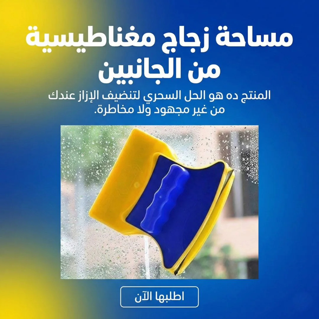 ماسحة مغناطيسية مكونة من قطعتين، بتحط واحدة من جوه والتانية من بره، والمغناطيس القوي بيخليهم يمشوا مع بعض. يعني وإنت واقف بأمان جوه الشقة، تمسح ناحية واحدة بس وهي تنظف الناحيتين في نفس الوقت ✨.